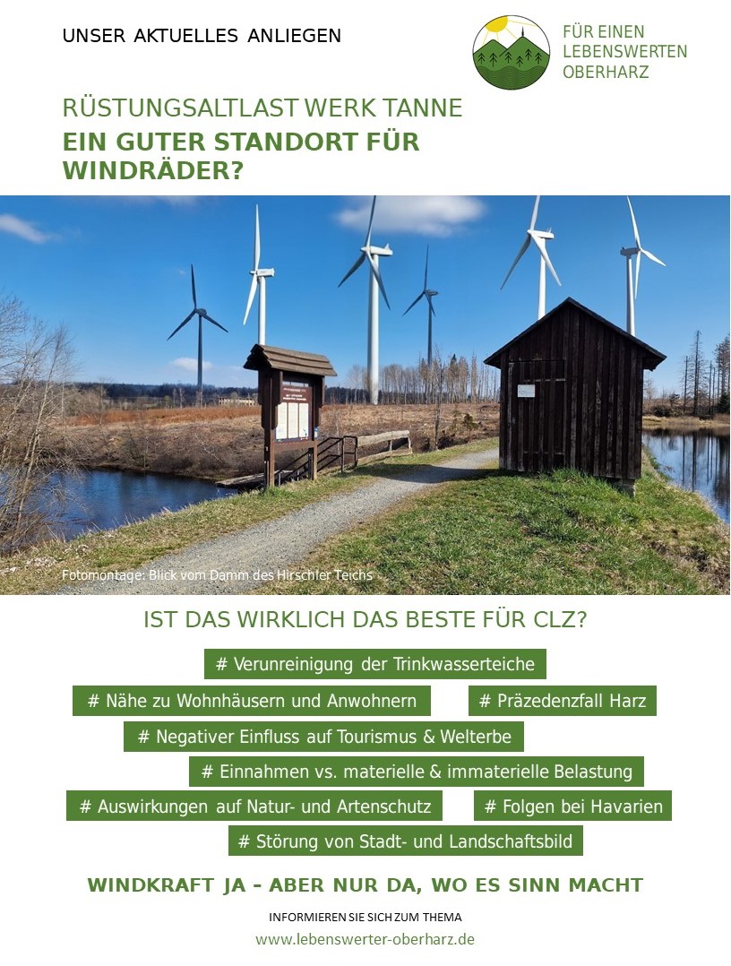 Petition: Rüstungsaltlast Werk Tanne – Kein Standort für Windkraftanlagen im Oberharz
